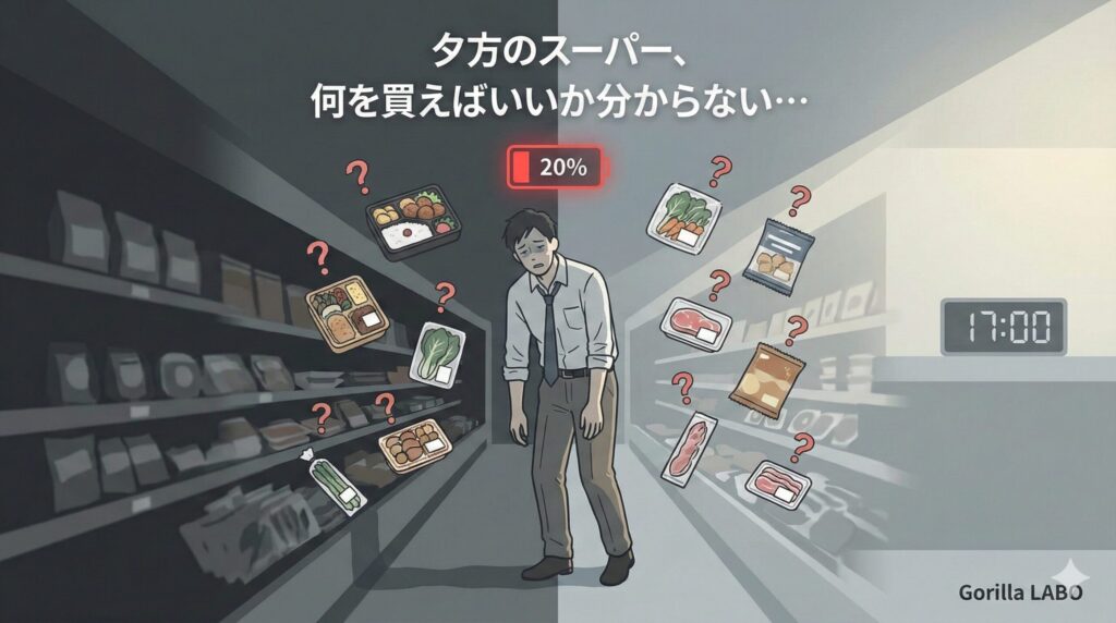 私がダイエットを始めた頃、最も疲れたのは「食事の選択」でした。朝は何を食べるか、昼は何を選ぶか、夜はどうするか。気づけば1日に217回もの食事関連の判断を下していたという研究があります。判断を繰り返すたびに脳の認知リソースは枯渇し、夕方にはスーパーで「もう何でもいいや」と弁当を手に取っていました。